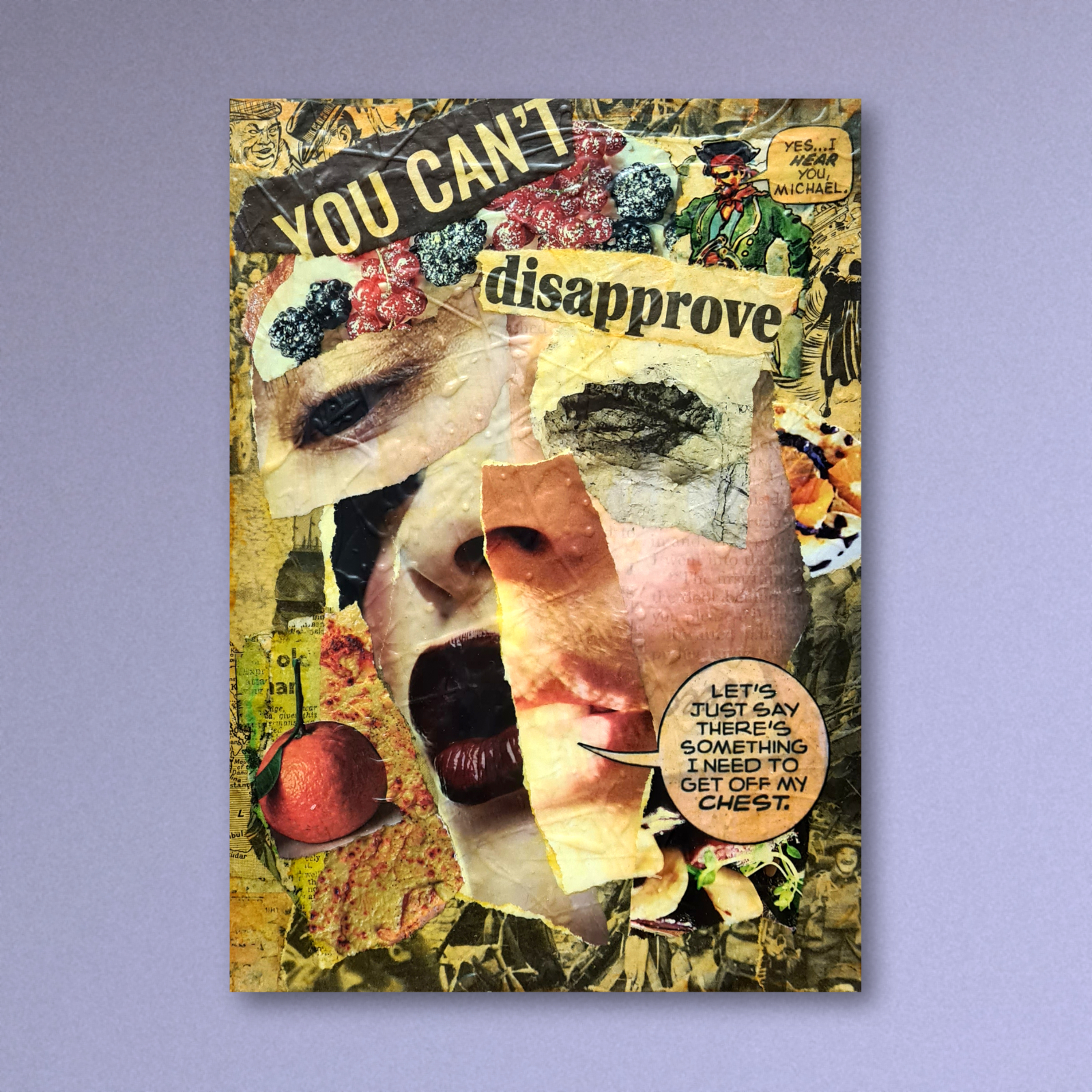 Original paper collage with acrylic ink on MDF panel.