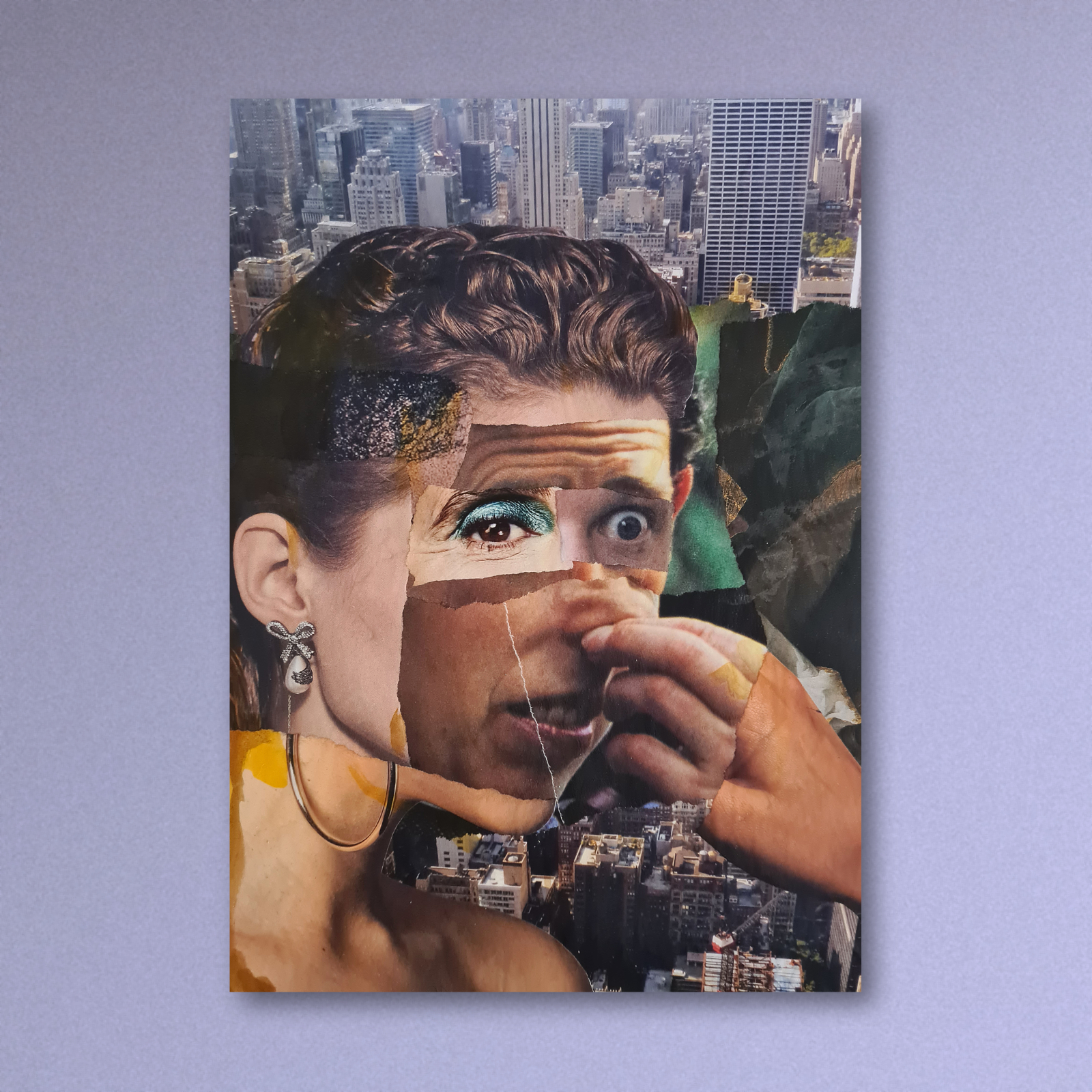 Paper collage on card. A blue-blooded scandal raising a mighty stink. One might want to change one’s name back to Saxe Coburg Gotha or somesuch.