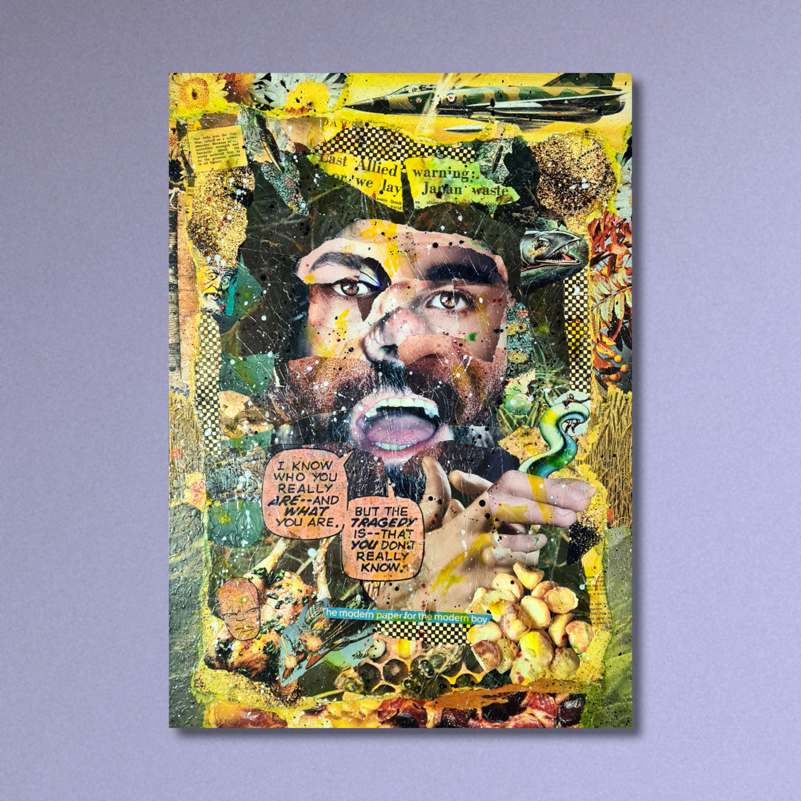 Original paper collage with acrylic ink on MDF panel. Another few amends to an earlier work substituting a rather unnatural border that grew to irritate me for the time that these works were on the walls and staring back at me accusingly.