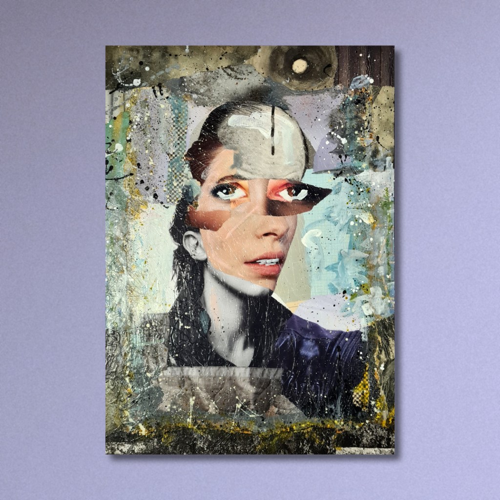Original paper collage with acrylic ink on MDF panel.