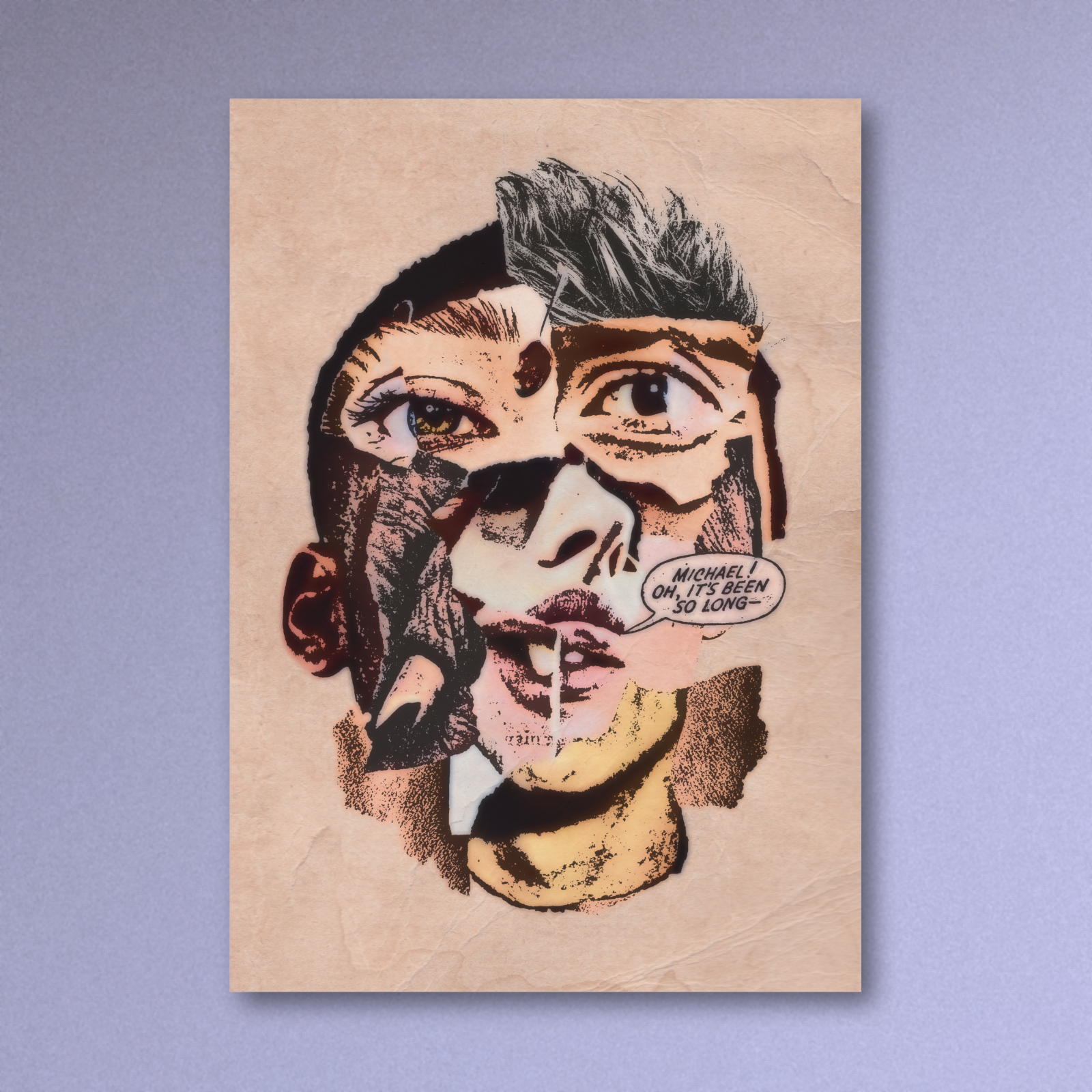 Original paper collage with digital amends. Printed on 350gsm silk card stock.