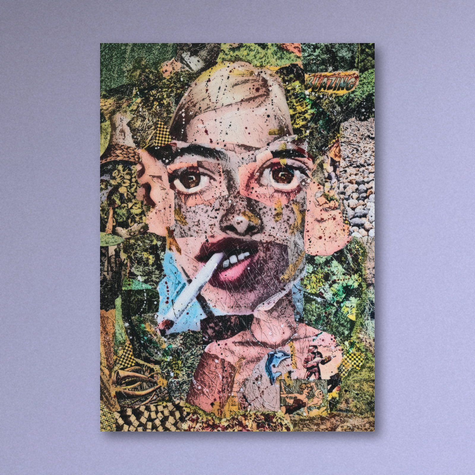 Original large format paper collage plus acrylic inks with digital amends. Printed on 350gsm silk card stock.